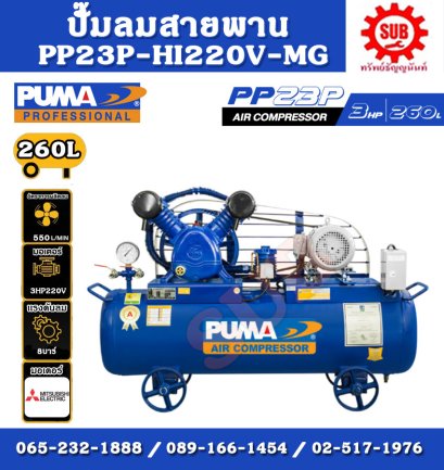 ปั๊มลม PP-23P 260 L + มอเตอร์ 3HP 220V MITSUBISHI