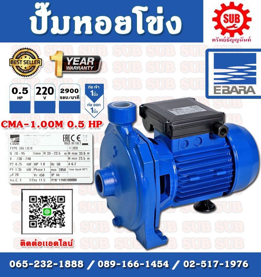 EBARA ปั๊มน้ำหอยโข่ง รุ่น CMA 1.00M กำลัง 1 แรงม้า ไฟ 220 V ท่อ 1" ของดีของแท้ราคาถูก ที่นี่เท่านั้น รับประกัน 1 ปี